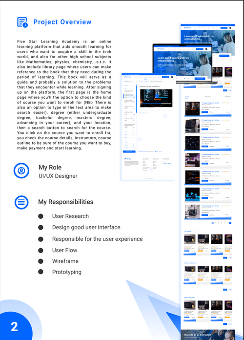 Five Star Learning Academy is an online learning platform that aids smooth learning for users who want to acquire a skill in the tech world, and also for other high school subjects like Mathematics, physics, chemistry, .e.t.c. It also include library page where users can make reference to the book that they need during the period of learning. This book will serve as a guide and probably a solution to the problems that they encounter while learning. After signing up on the platform, the first page is the home page where you’ll the option to choose the kind of course you want to enroll for (NB:- There is also an option to type in the text area to make search easier), degree (either undergraduate degree, bachelor degree, masters degree, advancing in your career), and your location, then a search button to search for the course. You click on the course you want to enroll for, you check the course details, instructors, course outline to be sure of the course you want to buy, make payment and start learning.